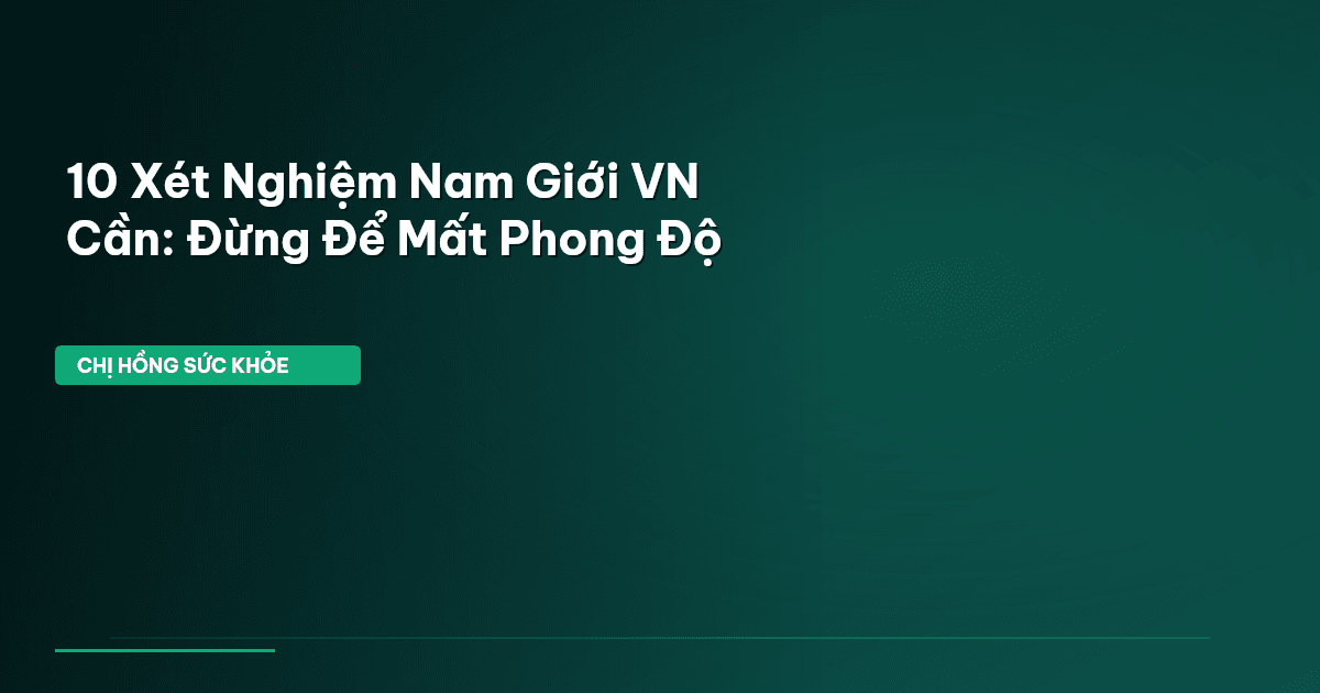 Tiêu chí Chi tiết 📌 Chủ đề 10 Xét Nghiệm Nam Giới VN Cần: Đừng Để Mất Phong Độ 📊 Số từ 2239 từ ✅ Xác thực Perplexity Sonar Pro + Gemini Grounding 🎯 Key Takeaways1Nam giới nên chủ động khám sức khỏe định kỳ từ tuổi 30-35 để phát hiện sớm các nguy cơ tim mạch, chuyển hóa và ung thư, tránh tình trạng bệnh tiến triển nặng.210 xét nghiệm thiết yếu bao gồm kiểm tra huyết áp, đường huyết, mỡ máu, chức năng gan thận, công thức máu, tầm soát ung thư đại trực tràng và tuyến tiền liệt, xét nghiệm testosterone, vitamin D và viêm gan B, C.3Sử dụng các công cụ của Cú Thông Thái như Health Records, Health Dashboard và AI Longevity Protocol giúp bạn lưu trữ, theo dõi, phân tích kết quả xét nghiệm và xây dựng lối sống lành mạnh một cách khoa học, chủ động.🌿 Chị Hồng Sức Khỏe khuyênKhám phá công cụ sức khỏe: BMI, Calories, Giấc ngủ tại suckhoe.cuthongthai.vn