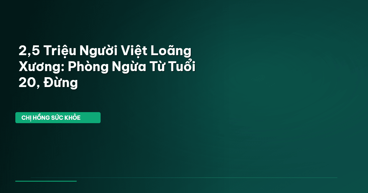 ⏱️ 12 phút đọc · 2205 từ Giới Thiệu: Xương Khớp Có Thật Sự Chắc Khỏe Như Bạn Nghĩ? Chào các em! Chị Hồng biết nhiều bạn vẫn nghĩ loãng xương là bệnh của người lớn tuổi, cứ qua tuổi 50, 60 mới phải lo. Nhưng bạn có biết, ước tính có khoảng 2,5 triệu người Việt Nam đang mắc bệnh loãng xương , và đáng báo động hơn là tỷ lệ người trẻ mắc bệnh này đang có xu hướng gia tăng không ngừng theo Bệnh viện Đại học Y Dược TP.HCM? Con số này thật sự khiến chúng ta phải giật mình, đúng không nào? Loãng xương k…
