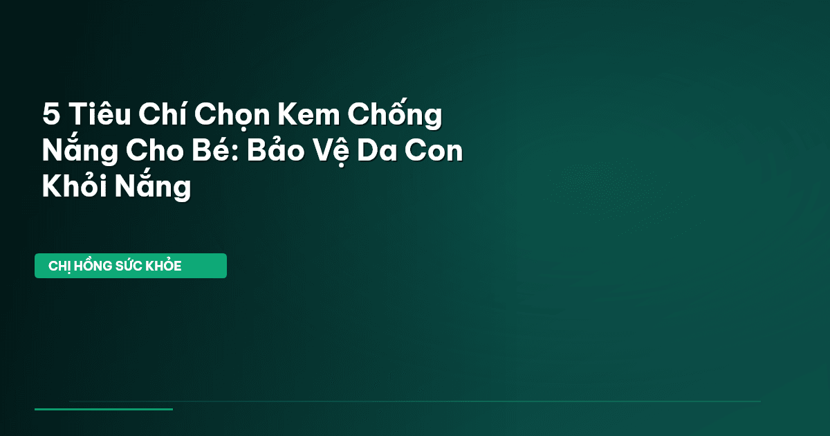 ⏱️ 12 phút đọc · 2376 từ Giới Thiệu: Làn Da Bé Mỏng Manh Cần Được Bảo Vệ Đặc Biệt Bạn có biết, theo các chuyên gia da liễu, có tới 80% tổn thương da do nắng tích lũy trong suốt cuộc đời xảy ra trước tuổi 18 không? Làn da non nớt của các bé yêu chúng ta mỏng manh hơn rất nhiều so với người lớn, nên cực kỳ dễ bị tổn thương bởi tác hại của tia UV. Đây không chỉ là nguy cơ cháy nắng tức thời mà còn là mầm mống cho các vấn đề nghiêm trọng hơn về sau, như lão hóa sớm hay thậm chí là ung thư da. Vậy nê…