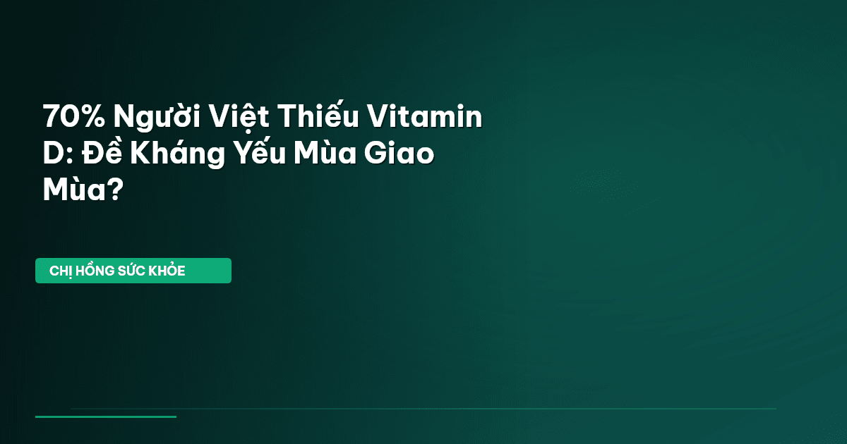 ⏱️ 12 phút đọc · 2291 từ Giới Thiệu: Đề Kháng Kém Mùa Giao Mùa — Vấn Đề Chung Của Người Việt Bạn có biết, theo thống kê của Viện Dinh dưỡng Quốc gia và các nghiên cứu gần đây, có đến 70% người Việt trưởng thành thiếu vitamin D ? Đây không chỉ là một con số đáng báo động mà còn là yếu tố then chốt giải thích vì sao chúng ta lại dễ ốm vặt, đặc biệt là khi thời tiết "đỏng đảnh" giao mùa. Chắc hẳn ai trong chúng ta cũng từng trải qua cảm giác khó chịu khi cơ thể cứ mãi "dở dở ương ương" mỗi khi gió …