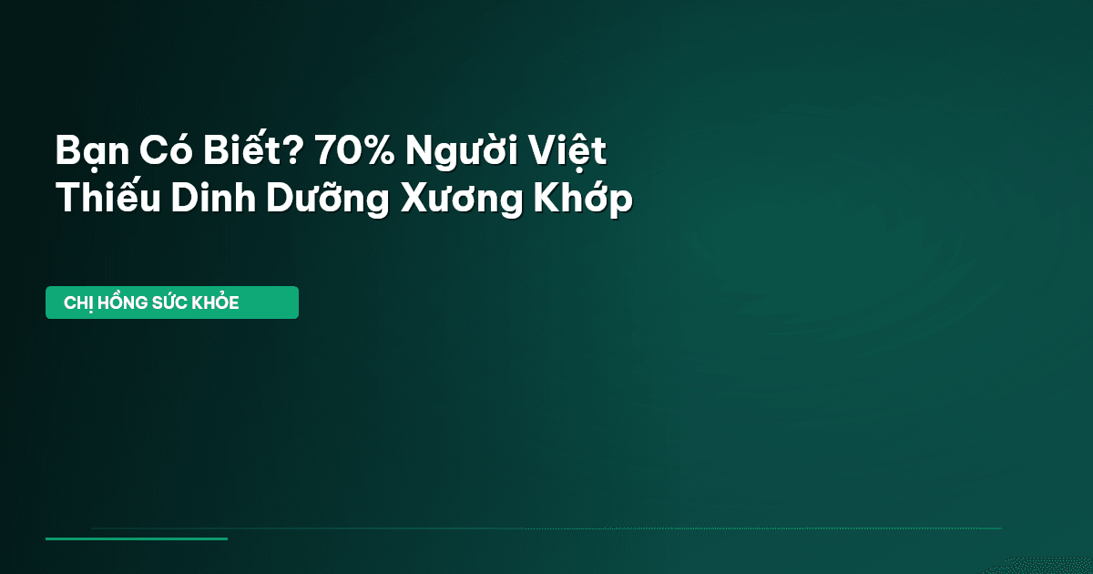 ⏱️ 12 phút đọc · 2319 từ Giới Thiệu: Đừng Để Xương Khớp Lên Tiếng Quá Muộn Bạn có biết, nhiều nghiên cứu cho thấy tỉ lệ người Việt trưởng thành đang đối mặt với các vấn đề xương khớp ngày càng tăng, thậm chí cả ở độ tuổi 20-30? Không chỉ vậy, có tới 70% người Việt trưởng thành thiếu vitamin D – một yếu tố then chốt cho sức khỏe xương khớp mà nhiều người vẫn còn bỏ qua. Đau nhức vai gáy, mỏi lưng sau một ngày dài làm việc, hay những tiếng "lục cục" khi cử động khớp gối không còn là chuyện của riê…