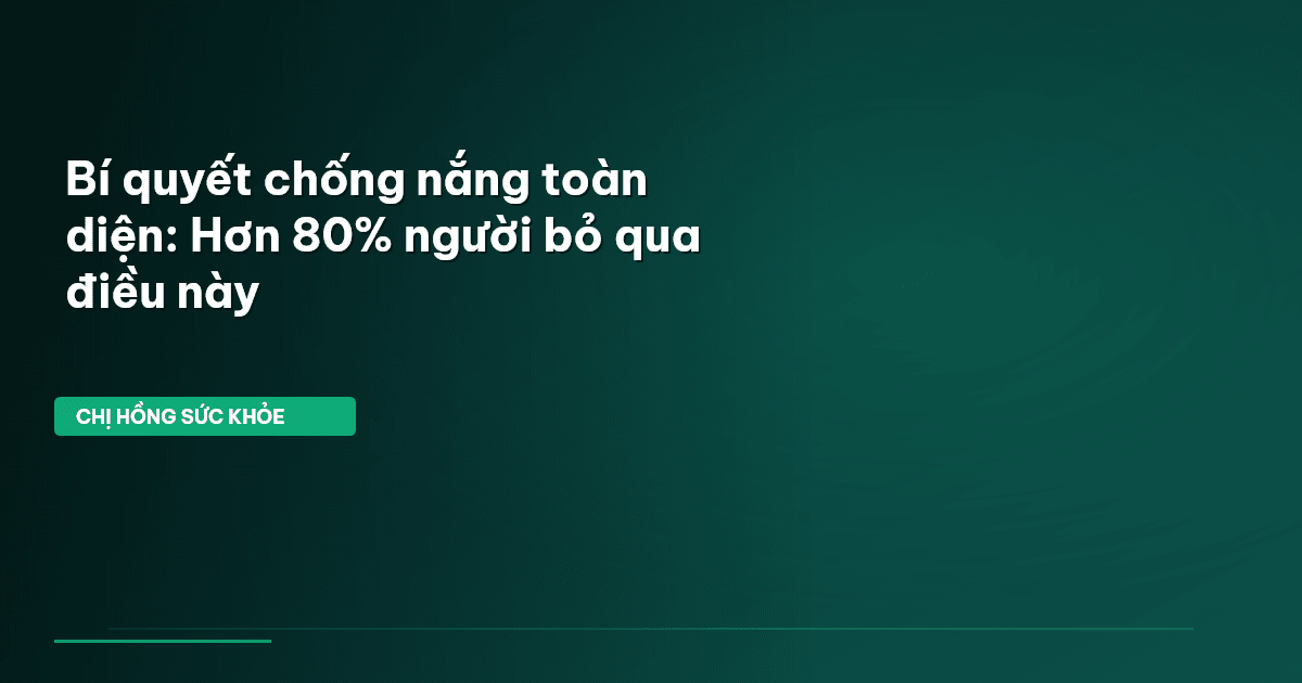 ⏱️ 10 phút đọc · 1964 từ Giới Thiệu: Bí quyết chống nắng toàn diện Bạn có biết, Việt Nam là một trong những quốc gia có chỉ số UV (tia cực tím) luôn ở mức báo động cao, thường xuyên dao động từ 8 đến 11+? Đây là mức "rất cao" đến "cực kỳ cao" theo thang đo của Tổ chức Y tế Thế giới (WHO). Điều đáng lo ngại hơn là hơn 80% người Việt vẫn chủ quan với nắng, cho rằng chỉ khi trời nắng gắt mới cần chống nắng. Họ không biết rằng ngay cả những ngày mây mù hay khi ngồi trong nhà cạnh cửa sổ, tia UV vẫn …