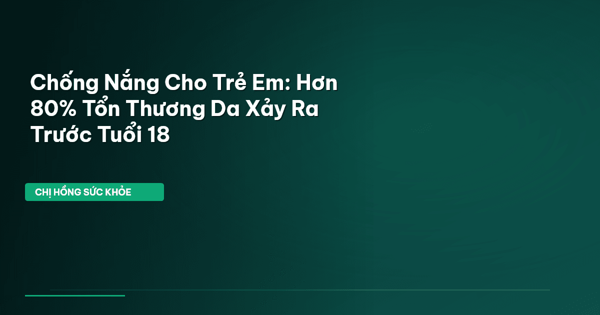 ⏱️ 11 phút đọc · 2049 từ Giới Thiệu Chào bạn, là Chị Hồng Sức Khỏe đây! Bạn có biết, hơn 80% tổng số tổn thương da do nắng xảy ra trước tuổi 18? Đây là một con số cực kỳ đáng báo động, phải không nào? Điều này có nghĩa là, ngay cả khi con bạn còn bé, mỗi lần bé ra nắng mà không được bảo vệ cẩn thận, làn da non nớt ấy đã phải hứng chịu những tổn thương tích lũy mà có thể gây ra hậu quả lâu dài về sau. Làn da của trẻ em rất khác biệt so với người lớn. Nó mỏng manh hơn, hàng rào bảo vệ da chưa hoàn…