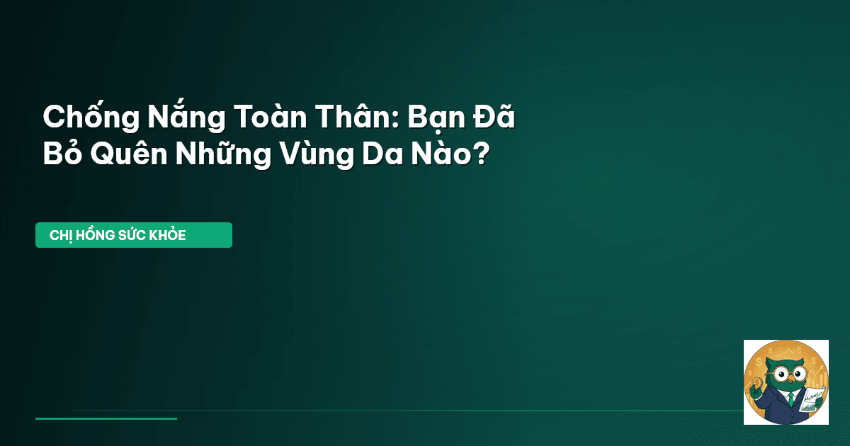 ⏱️ 14 phút đọc · 2687 từ Giới Thiệu: Chống Nắng Toàn Thân Có Thật Sự Cần Thiết? Chào cả nhà Cú Thông Thái, Chị Hồng đây! Chắc hẳn nhiều bạn ở đây rất siêng năng trong việc thoa kem chống nắng mỗi sáng, đúng không nào? Nhưng bạn có biết, ước tính hàng triệu người Việt đang tỉ mỉ thoa kem chống nắng cho da mặt nhưng lại vô tình bỏ quên nhiều vùng da quan trọng khác trên cơ thể ? Điều này giống như việc bạn khóa cửa chính cẩn thận nhưng lại quên đóng cửa sổ vậy đó, rủi ro vẫn có thể ập đến bất cứ l…