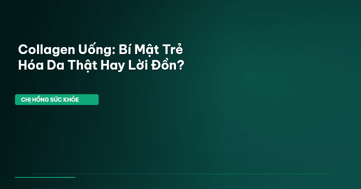 ⏱️ 12 phút đọc · 2301 từ Giới Thiệu: Collagen — Lời Hứa Trẻ Hóa Hay Hiểu Lầm Phổ Biến? Chào em, lại là Chị Hồng Sức Khỏe đây! Chị biết, cứ bước qua tuổi 30 là chị em mình bắt đầu thấy da dẻ không còn căng bóng như xưa, nếp nhăn li ti bắt đầu xuất hiện, rồi nỗi lo lão hóa cứ thế mà ám ảnh. Lúc này, từ khóa "collagen uống" bỗng trở thành tâm điểm, hứa hẹn một làn da trẻ trung, rạng rỡ trở lại. Bạn có biết, theo một khảo sát gần đây, hơn 70% phụ nữ Việt Nam ở độ tuổi 30-50 đã từng sử dụng hoặc đang…