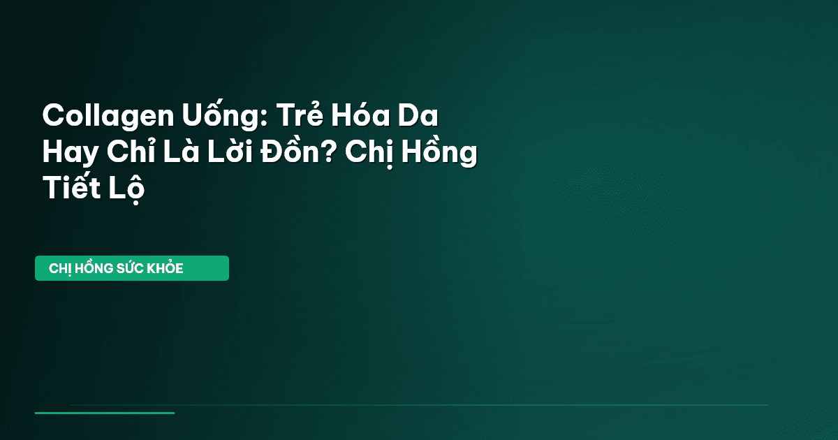 ⏱️ 13 phút đọc · 2503 từ Giới Thiệu: Collagen Uống — Liệu Có Phải Là 'Thần Dược' Trẻ Hóa? Chào bạn, Chị Hồng Sức Khỏe đây! Bạn có biết, theo một khảo sát gần đây tại Việt Nam, có tới 85% phụ nữ trên 30 tuổi đã từng tìm hiểu hoặc sử dụng collagen để níu giữ nét thanh xuân hay cải thiện sức khỏe xương khớp? Đây quả là một con số ấn tượng, cho thấy collagen đang trở thành xu hướng 'nóng hổi' trong cộng đồng của chúng ta. Từ những lời quảng cáo 'có cánh' về làn da căng mọng, không nếp nhăn đến mái t…