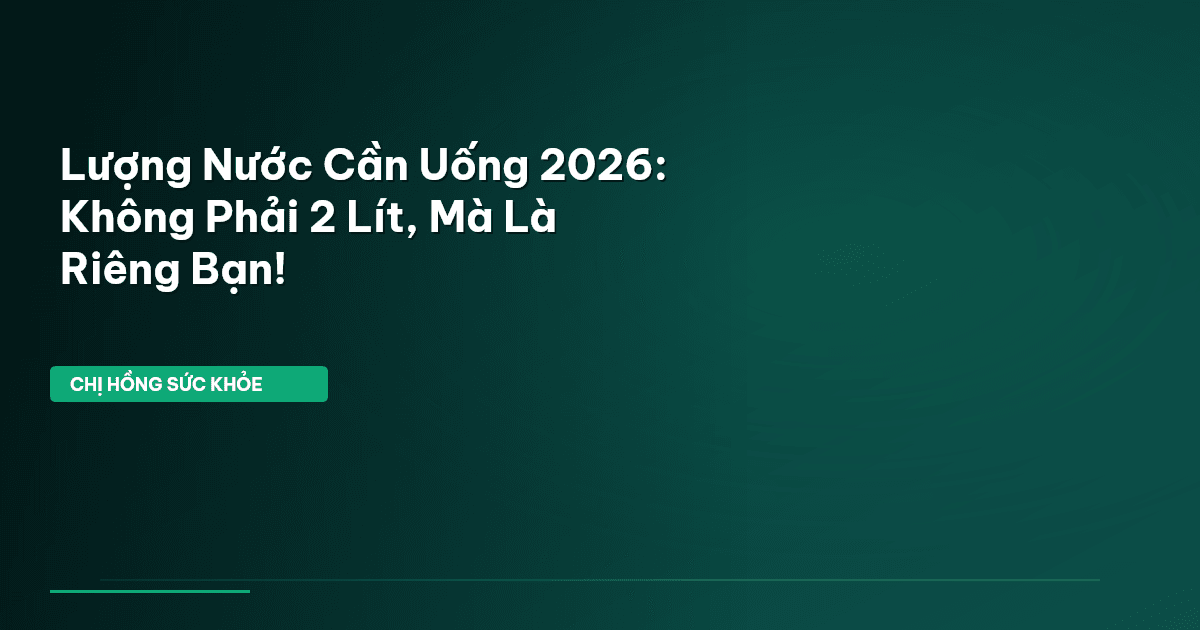 ⏱️ 14 phút đọc · 2721 từ Chào Bạn, Bạn Có Đang Uống Nước Đúng Cách Năm 2026? Bạn có biết, trung bình một người Việt trưởng thành chỉ uống khoảng 1.5 – 2 lít nước mỗi ngày, nhưng đó có thật sự là đủ cho tất cả mọi người? Nhiều người vẫn giữ vững niềm tin vào con số cố định '2 lít mỗi ngày' mà quên mất rằng, nhu cầu nước của cơ thể chúng ta thay đổi linh hoạt mỗi ngày, thậm chí mỗi giờ, tùy thuộc vào vô vàn yếu tố khác nhau. Đừng để suy nghĩ đó khiến bạn vô tình rơi vào tình trạng thiếu nước mạn t…