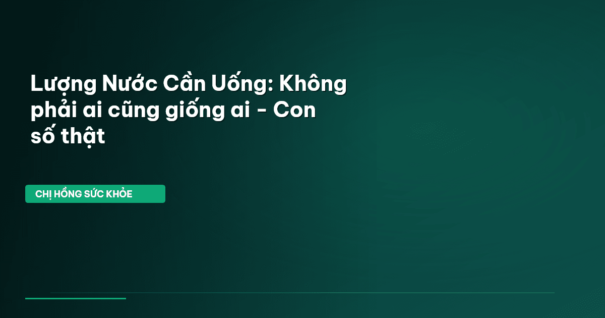 ⏱️ 12 phút đọc · 2389 từ Giới Thiệu: Lượng Nước Bạn Đang Uống Có Thực Sự Đủ? Chào bạn, chị Hồng Sức Khỏe đây! Bạn có biết, rất nhiều người trong chúng ta nghĩ rằng mình đã uống đủ nước, chỉ cần cảm thấy khát thì uống, hoặc cứ thế mà đong đếm 2 lít mỗi ngày là xong? Nhưng sự thật có thể làm bạn bất ngờ đấy. Nếu bạn cảm thấy mệt mỏi nhẹ, khó tập trung, hay thậm chí là da dẻ không được tươi tắn, có thể nguyên nhân sâu xa lại đến từ việc cơ thể đang "khát thầm lặng" mà bạn không hề hay biết. Các ngh…