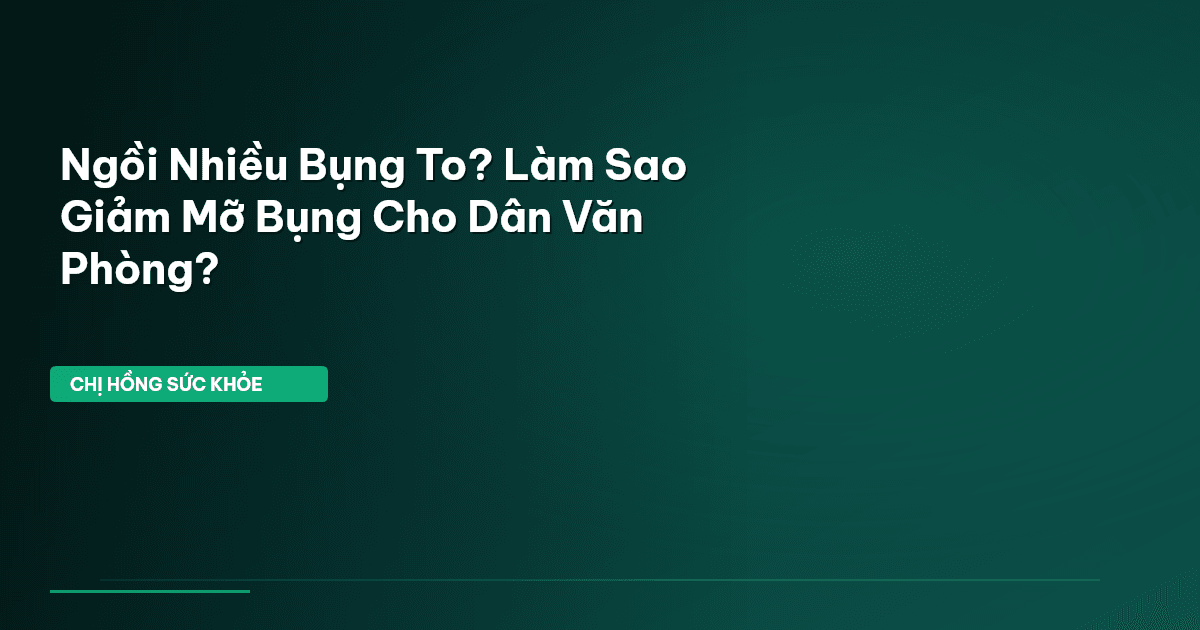 ⏱️ 9 phút đọc · 1707 từ Giới Thiệu: Nỗi Lo Vòng 2 Của Dân Văn Phòng Bạn có biết, trung bình một người trưởng thành ở Việt Nam dành đến 8-9 giờ mỗi ngày để ngồi ? Đó là một con số khổng lồ, đặc biệt khi bạn làm việc văn phòng, liên tục dán mắt vào màn hình máy tính. Và đáng lo hơn, điều này không chỉ khiến bạn dễ tăng cân nói chung, mà còn đặc biệt 'ưu ái' tích tụ mỡ ở vùng bụng. Chị Hồng biết, nhiều em làm văn phòng than thở rằng dù đã cố gắng ăn kiêng, tập luyện nhưng vòng 2 vẫn 'lì lợm' không …