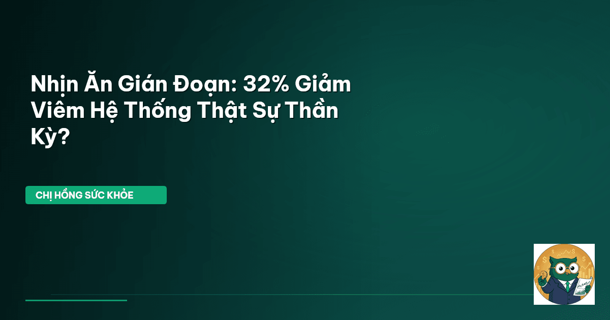 ⏱️ 13 phút đọc · 2412 từ Nhịn Ăn Gián Đoạn: Làn Sóng Khoa Học Mới Giảm 32% Viêm Hệ Thống Bạn có biết, tỷ lệ béo phì ở các đô thị lớn như TP.HCM và Hà Nội đã tăng đến 23% theo Viện Dinh dưỡng Quốc gia năm 2026? Con số này thật đáng báo động, chị em nhỉ? Cân nặng dư thừa không chỉ ảnh hưởng đến vóc dáng mà còn là nguyên nhân tiềm ẩn của nhiều bệnh viêm nhiễm mạn tính trong cơ thể chúng ta. Giữa muôn vàn phương pháp giảm cân, nhịn ăn gián đoạn (Intermittent Fasting – IF) nổi lên như một xu hướng đư…