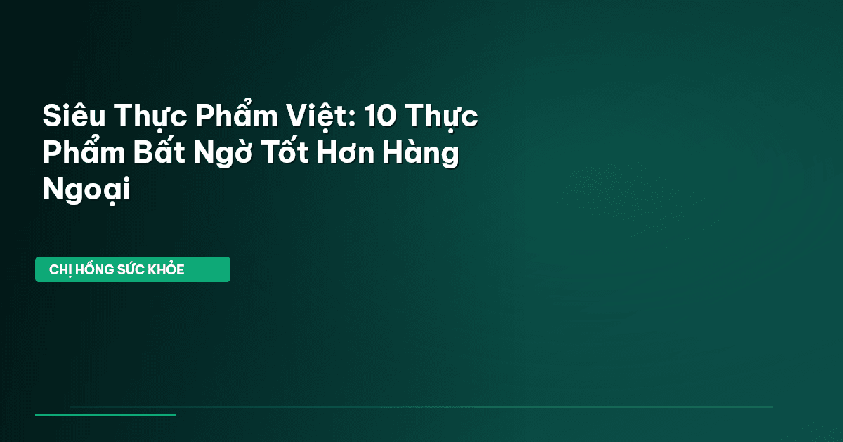 ⏱️ 13 phút đọc · 2458 từ Giới Thiệu: Kho Báu Dinh Dưỡng Ngay Sân Nhà Bạn Bạn có biết, hơn 60% người Việt sẵn sàng chi trả cho các sản phẩm sức khỏe, thực phẩm bổ sung để cải thiện sức khỏe? Đó là một con số rất lớn, cho thấy chúng ta ngày càng quan tâm đến việc chăm sóc bản thân. Tuy nhiên, không phải ai cũng biết rằng, ngay tại Việt Nam mình, chúng ta có một kho tàng 'siêu thực phẩm' vô cùng phong phú, bổ dưỡng không kém gì các loại nhập khẩu đắt đỏ mà lại còn tươi ngon, dễ kiếm và giá cả phải …