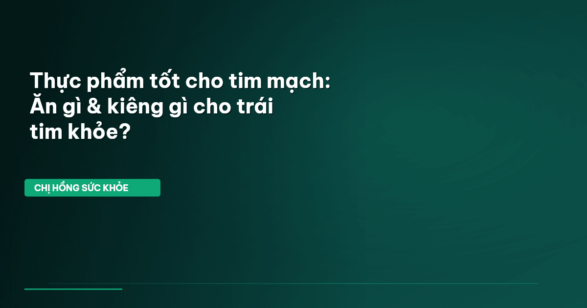 ⏱️ 12 phút đọc · 2259 từ Giới Thiệu: Trái Tim Bạn Đang Kêu Cứu? Chào bạn, Chị Hồng biết rằng có thể bạn đang nghĩ bệnh tim mạch là chuyện của ông bà, cha mẹ mình thôi phải không? Nhưng bạn có biết, bệnh tim mạch đang ngày càng trẻ hóa ở Việt Nam? Theo thống kê từ Bộ Y tế, số người mắc và tử vong vì bệnh tim mạch đang có xu hướng gia tăng đáng báo động, đặc biệt là ở nhóm tuổi lao động. Ước tính, hàng năm có khoảng 17,9 triệu người trên toàn cầu tử vong vì các bệnh liên quan đến tim mạch, và con …