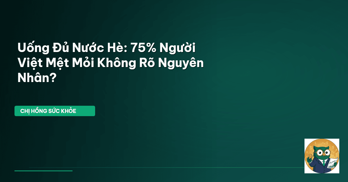 ⏱️ 9 phút đọc · 1676 từ Uống Đủ Nước Hè: 75% Người Việt Mệt Mỏi Không Rõ Nguyên Nhân? Chào cả nhà Cú Thông Thái thân yêu của Chị Hồng! Mùa hè đến rồi, nắng nóng oi ả không chỉ khiến chúng ta khó chịu mà còn tiềm ẩn nhiều rủi ro cho sức khỏe. Bạn có biết, theo nhiều nghiên cứu, ước tính có đến 75% người trưởng thành có thể đang mất nước ở mức độ nhẹ đến trung bình mà không hề hay biết? Đừng để cơ thể mình rơi vào tình trạng đó, đặc biệt là khi nhiệt độ cứ tăng cao mỗi ngày. Chị Hồng biết, nhiều b…